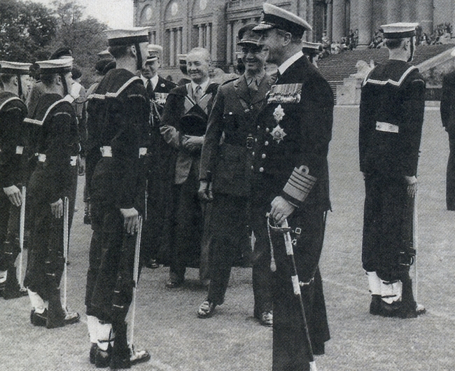 John Uttley, housemaster at Stowe School, accompanying a visiting Earl Mountbatten.
