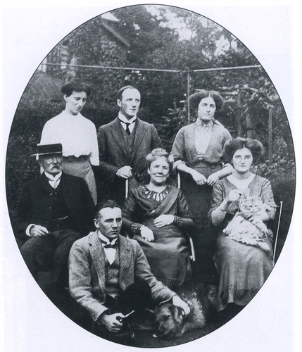 The Uttley family photographed at Bowdon, Cheshire in 1911. Back row: Alison, James and Alice Uttley Middle row: Mr G.H. Uttley, Mrs Uttley, Gertrude Uttley Front row: George Uttley
